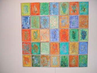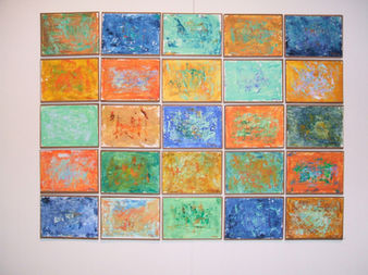 In this exhibition, as I present colors inspired by nature with abstract images, I want to repeat what the plants around us tell us; that nature is part of us and the best healer is “nature”. The 260 small paintings here are abstract works mostly defined in colors close to the seven pure colors. Smallness is far from magnificence, yet, while it implies modesty, it also shows that density has nothing to do with the area. The resistance of a small plant to wind, rain, and cold is an indication of its strength. Its effect is also that strong. On the four big panels, I have symbolically installed the plants that grow in our natural environment and what they tell us. Plants, in their natural way, without any need for decoration and ornamentation, are always there for us to become one and whole with their souls and essences. They are waiting around to be noticed by us, to help restore our health and strength.